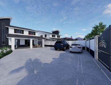 Il progetto prevede ingresso da cancello carrabile su ampio spazio esterno, garage coperto di mq. 32 dal quale si accede direttamente all'interno dell'immobile, l'ingresso principale da veranda su zona living pari a 3 vani (mq. 75) cucina soggiorno, altra veranda su retro della villa, 1 camera da letto e servizio di rappresentanza al piano.