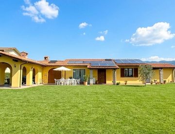 La proprietà si sviluppa su circa 180 mq su un unico livello ed è inserita in un lotto di circa 6.000–6.500 mq, di cui circa 2.500 mq recintati a giardino.