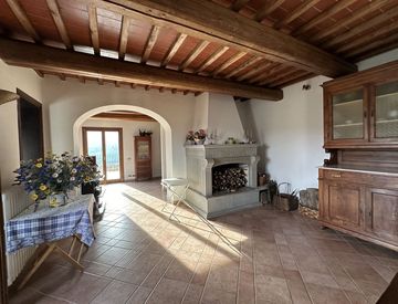 Bella colonica ristrutturata recentemente nel rispetto dello stile rurale Toscano, in posizione spettacolare, con vista su la campagna intorno a Carmignano. L´immobile si sviluppa su tre livelli e tutta la zona giorno accede direttamente al giardino e alla bellissima terrazza coperta. Attraverso una scala bordata di fioriture e una spaziosa terrazza con loggia, si accede al piano principale con ingresso, soggiorno con camino, zona pranzo e cucina,...