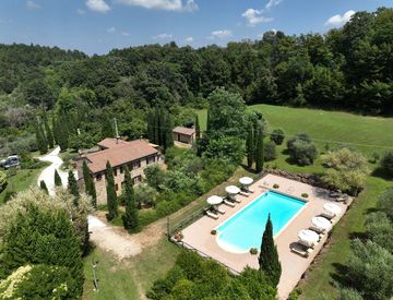 Stupenda villa immersa nel verde delle colline toscane. Il maestoso cancello apre le porte ad un viale di cipressi che conduce direttamente alla proprietà.
