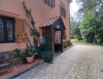 In the quiet and panoramic hamlet of Parrana San Giusto, in the municipality of Collesalvetti, we are offering for sale a splendid detached villa, surrounded by the green Tuscan hills and characterized by a privileged exposure and total privacy.