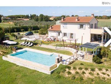 San Lorenzo di Cortona, ampia Villa di recentissima costruzione dotata di tutti i confort con bella vista su Cortona. La Villa è completamente recintata, dotata di un ampio parco che puo' essere ulteriormente ampliato. Riscaldamento a pavimento. Piscina con impianto a sale e doppi motori. Impianto Fotovoltaico da 15 kw. Batterie di accumulo da 25 kw. Impianto solare termico. Per informazioni tel. 348-8714685