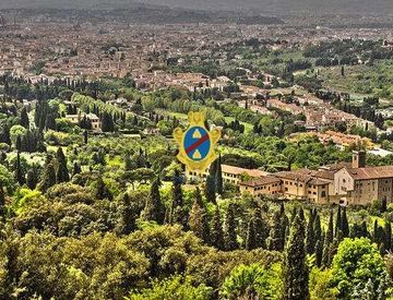 In contesto collinare di grande fascino, all'interno di un complesso storico tutelato, villino libero su quattro lati di circa 230 mq, disposto su tre livelli, con giardino privato di circa 800 mq, terrazze panoramiche per complessivi 200 mq e piscina con massima privacy.