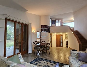 L' immobile, di 260 mq, è composta da ingresso al piano terra in ampio e luminoso soggiorno, cucina abitabile, doppi servizi finestrati e 3 camere, oltre accesso alla mansarda con ampia vetrata, due terrazze e un sottotetto; al piano interrato troviamo un vano pluriuso dotata di grande camino ed adibito a taverna, due cantine (una adibita a lavanderia) e doppio garage accessibile da rampa carrabile ad uso esclusivo.