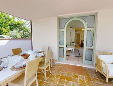 Si accede alla villa libera su 4 lati, da una stradina riservata al passaggio del proprietario, il giardino è di 174 mq. , ma si avvale della zona del patio molto carina e graziosa ideale per le serate estive da vivere con gli amici. La proprietà non ha il posto auto.