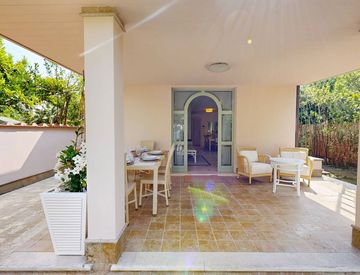 Nel cuore dell’esclusivo quartiere di Vittoria Apuana, a soli 250 metri dalle splendide spiagge della costa versiliese, si trova questo elegante villino distribuito su due livelli, oggetto di una recente e raffinata ristrutturazione.