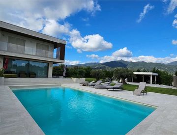 Splendida villa con piscina. La villa, costruita con materiali di prima qualità e con ottime rifiniture, è elevata su due piani fuori terra per circa 200 mq su lotto di 1400 mq ed è così composta: Al piano terra ampio soggiorno, cucina, camera e bagno oltre a pompeiana per godersi pranzi e cene all'aperto. Al primo piano troviamo invece la zona notte, composta da quattro camere da letto matrimoniali e tre bagni oltre ad ampia terrazza. *Per motivi...
