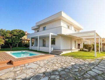 Immersa in un grande giardino privato che invita alla tranquillità e al relax, la villa è ideale per famiglie o come investimento turistico grazie alla possibilità di ricavare fino a sette camere da letto con relativi bagni. Questo rende l'immobile perfetto per accogliere ospiti o creare l'ambiente ideale secondo le proprie esigenze abitative.