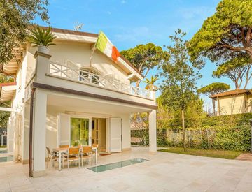 Elegante Villa singola a circa 600 metri dal mare, inserita nella prestigiosa cornice di Forte dei Marmi, tra l’esclusiva zona di Roma Imperiale e il Centro.