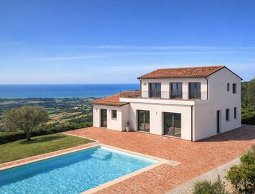 Villa unifamiliare in splendida posizione esposta ad ovest sul crinale di Guardistallo, con vista panoramica fino alla Costa degli Etruschi.