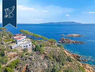 Situata nella suggestiva cornice dell'Isola del Giglio, questa esclusiva villa pieds dans l'eau è in vendita nella pittoresca area di Giglio Porto, su un promontorio che scende dolcemente verso le acque turchesi del Mediterraneo. La proprietà comprende una villa principale, diversi annessi una dependance, offrendo complessivamente 400 mq di spazi interni. Gli esterni vantano ampie terrazze panoramiche su più livelli, di cui una dotata di vasca idromassaggio,...