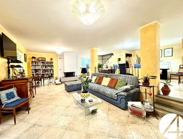 Ampio soggiorno open-space con camino trifacciale
