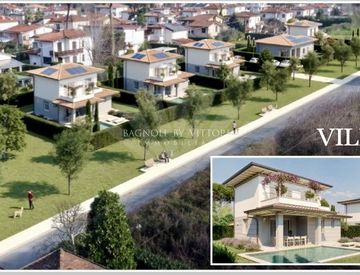Marina di Pietrasanta località Tonfano: complesso immobiliare comprendente 4 ville unifamiliari con giardino privato, posti auto e realizzazione di piscina (extra capitolato) della misura di mq. 31,50