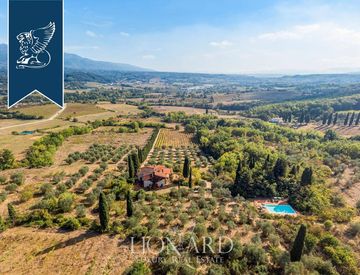 Tipico podere toscano in vendita immerso nella natura della Valle dell'Arno in Chianti, a pochi chilometri da Firenze, con vista mozzafiato sui vigneti e gli uliveti circostanti.