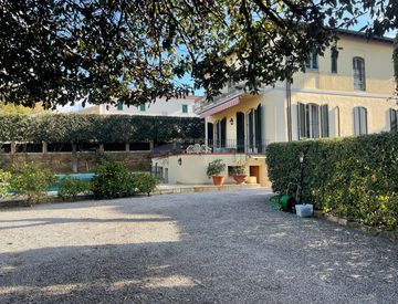 Situata in posizione centrale e assolutamente esclusiva, questa casa da sogno si presenta libera su quattro lati, circondata da un incantevole giardino con piscina. L'accesso alla proprietà è agevolato da due ingressi, uno pedonale e l'altro carrabile attraverso un cancello su strada, con ampio spazio per parcheggiare fino a 15 autovetture.