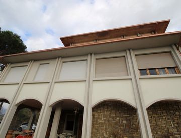 vendiamo porzione di villa di lusso con ingresso privato ed ampio giardino esterno. L'immobile si sviluppa su 3 livelli e si presta anche ad essere suddiviso in più unità; attualmente si compone di cucina, sala, 3 bagni, 4 camere uno studio altre 2 sale, vari vani accessori, cantine posto auto. Giardino di circa 2000 mq.
