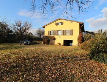 villa completamente indipendente circondata da circa 4 ettari di terreno pianeggiante e composta al piano rialzato da cucina abitabile, ampio soggiorno, studio/camera, camera matrimoniale e bagno, al piano superiore, mansardato, da open space di circa 100 mq. , ove è possibile realizzare vari vani utili. Al piano seminterrato fondi per circa 80 mq. Completa la proprietà fienile antistante la villa ove è stato realizzato un piccolo appartamento autonomo....