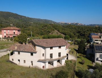 A poca distanza dal centro storico di Panicale, in graziosa zona residenziale in posizione collinare molto panoramica, grande villa di 800 mq circa suddivisa in due unità speculari ciascuna di 400 mq circa che si sviluppano su tre livelli come segue: Piano seminterrato: grande garage, ampia cantina, lavanderia, bagno, fondo e centrale termica; Piano terra: ingresso, grande soggiorno con angolo cottura ed accesso ai portici, bagno, due camere matrimoniali,...