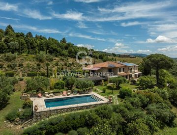 Questa residenza di prestigio, immersa nell'incantevole paesaggio umbro nei pressi di Passignano, offre una vista panoramica senza eguali sul Lago Trasimeno.