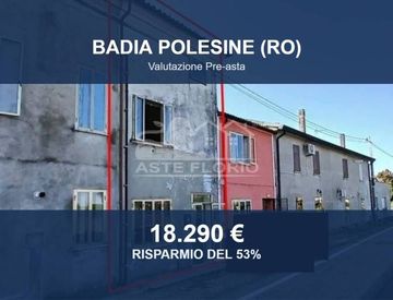 Casa indipendente in asta a Badia Polesine (RO) – Via Argine Destro 142 (CAP 45021) Abitazione di tipo ultrapopolare situata a Badia Polesine (RO), in frazione Salvaterra, via Argine Destro n. 142. L'edificio è accostato su due lati e si sviluppa su tre piani fuori terra. La costruzione risale presumibilmente a prima del 1942. Superficie e distribuzione interna L'abitazione ha una superficie lorda di 162,20 mq. Al piano terra si trovano un corridoio...
