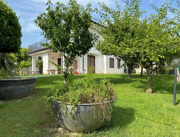 In posizione tranquilla, a ca. 150 m dal Lago e ca. 1.000 m da Bardolino, una interessante villa bifamiliare con parziale vista lago e bellissimo giardino di 600 m2 ca. piantumato con alberi da frutto.