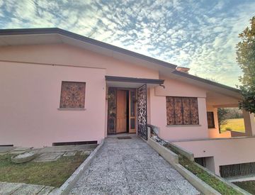 In zona residenziale collinare di pregio, tranquilla ma non isolata, proponiamo luminosa villa singola ben tenuta articolata su piani sfalsati; il piano terra include ingresso, sala da pranzo con terrazzo coperto, soggiorno e salotto con uscita sull'ampio portico, cucina abitabile sempre con l'uscita sul portico; il piano rialzato ospita la matrimoniale col bagno en suite, altre due camere doppie e il bagno finestrato; il piano seminterrato comprende...