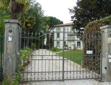 FARA VICENTINO. In zona collinare panoramica con vista sulla pianura, vendesi villa liberty con grande parco di circa 3000 mq piantumato da alberi secolari, ulivi e piante da frutto. L'accesso principale alla villa padronale è da strada bianca che prosegue poi al porticato sul retro.