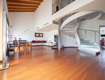 Attraverso una scala dal particolare e unico design si accede alla zona notte, interamente travata a vista: un ampio soppalco affacciato sul soggiorno conduce alle tre camere da letto e al bagno.