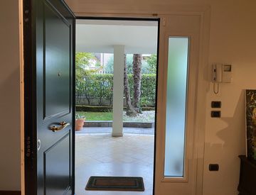 SACRA FAMIGLIA in contesto residenziale elegante villa dotata di ogni confort disposta su tre livelli, con ascensore, garage doppio, clima, ampio garage e terrazze solarium, circondata da un ampio giardino a verde piantumato.
