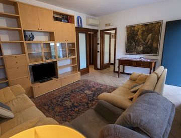 Tre camere matrimoniali: 17 mq – 16,5 mq – 13,2 mq, Bagno finestrato completo di vasca e doccia, due poggioli (di circa 8 mq)