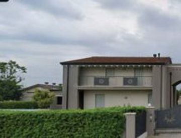 Comune di Riese Pio X (TV). Villino così catastalmente composto: ingresso - soggiorno - pranzo, cucina, disimpegno, bagno, ripostiglio, due portici e pompeiana coperta al piano terra; disimpegno, due camere, bagno, mansarda e loggia al piano primo; due ripostigli, cantina e centrale termica - lavanderia al piano interrato; annessa area scoperta esclusiva di circa 560 mq.