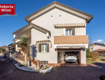 L'abitazione, tenuta in modo impeccabile, si compone al piano terra/rialzato, di soggiorno, cucina separata abitabile, locale di servizio/lavanderia finestrato, stanza pluriuso di 8 mq. e garage collegato di 16 mq. ; al piano primo, sono presenti 4 camere, un bagno finestrato e due terrazzi; al piano seminterrato è presente un confortevole locale "taverna" di 37 mq. con caminetto ed angolo cottura, oltre a locale cantina/ripostiglio.