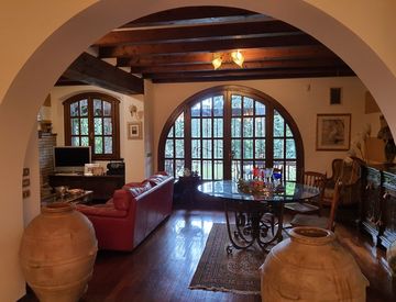 raffinatezza. Al piano terra, una spaziosa sala da pranzo di 30 mq accoglie gli ospiti, mentre la bellissima veranda offre un angolo di relax. La cucina, ampia e funzionale, è ideale per preparare deliziosi pasti da condividere con amici e familiari.