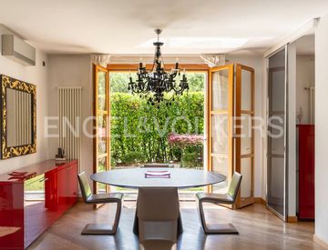 Al piano terra si apre una raffinata zona giorno, composta da una cucina abitabile e da un elegante soggiorno con accesso diretto al giardino, ideale per pranzi e cene all’aperto.