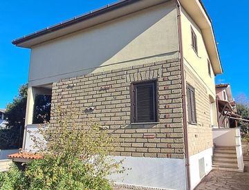 Al piano terra rialzato, un luminoso soggiorno accoglie gli ospiti, mentre la cucina abitabile è ideale per preparare deliziosi pasti in famiglia. Il bagno completamente ristrutturato al piano terra aggiunge un tocco di modernità. Una scala a vista conduce al primo piano, dove si trovano due camere da letto, una cameretta e un secondo bagno con doccia, perfetto per le esigenze quotidiane.