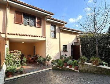Villetta a schiera situata nella zona di Sacrofano, sulla Via Sacrofanese località Guado Tufo, adiacente al paese. si sviluppa su due livelli. Piano terra composto da: ingresso, salone doppio con camino, cucina e bagno. P1: 3 camere e bagno. Terrazzo coperto. Posto auto scoperto. Giardino privato di 150 mq. MOLTO LUMINOSO E PANORAMICO.