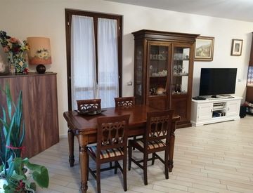 Calcinato, in recente complesso residenziale, ottima villetta a schiera, disposta su tre livelli, con ingresso indipendente dal giardino privato. Internamente è composta da soggiorno con cucina a vista, con accesso al giardino retrostante, e servizi. Scala che conduce al primo piano, in cui si trovano: camera matrimoniale con balcone, camera doppia con terrazzino, camera singola e servizi con doccia. Al piano interrato autorimessa doppia (in lunghezza)...