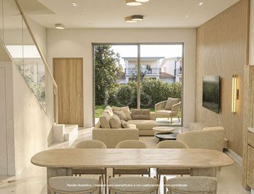 * Piano Terra (Zona Giorno): L'ingresso indipendente introduce a una luminosa zona living open-space. Le ampie vetrate creano continuità con il giardino, rendendo l'ambiente arioso e accogliente. Su questo livello troviamo un comodo bagno di servizio e il collegamento diretto all'autorimessa, una comodità impagabile.