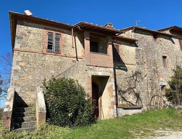 Monteriggioni, a km 5 ca dalla immediata periferia nord di Siena fabbricato terra tetto, libero su tre lati, costituito da n. 3 appartamenti (A/3 mq. 98; A/2mq 85; A/3 mq 95) da ristrutturare, mq. 300 ca di accessori), ettari 7 ca di terreno ad uliveto e varia coltura, ottima posizione.