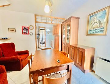 Al piano terra, un ampio soggiorno con angolo cottura accoglie la luce naturale, mentre il bagno con doccia completa la zona. Al primo piano, troviamo una camera matrimoniale e una camera singola con la possibilità di aggiungere un letto a castello, perfetta per i bambini. La veranda offre un ulteriore spazio da sfruttare, con una camera matrimoniale e un'altra camera con letto singolo e armadio a ponte.