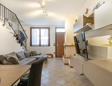 Al piano terra troviamo l’ingresso su cortile privato di circa 16 mq, una luminosa zona giorno con sala e angolo cottura, una cantina con predisposizione per creare una cucina separata dal soggiorno e un garage collegato internamente.