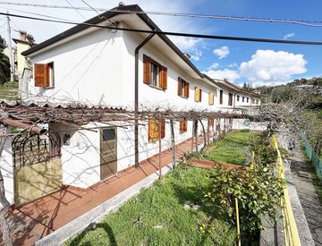 Sviluppata su due livelli, la casa offre una superficie di circa 100 mq per piano, con un giardino soleggiato dotato di una ampia pergola e viti rampicanti, perfetto per godere di momenti di riposo e condivisione all'aria aperta.