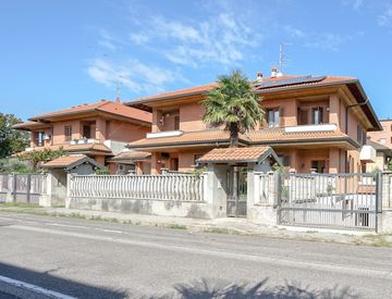 Spazio esterno e relax: un giardino privato frontale ti accoglie con eleganza, mentre sul retro troverai un ampio patio ideale per pranzi e cene all’aperto con amici e familiari. Comodità assicurata: parcheggio privato di ben 50 mq, perfetto per più auto o per chi cerca praticità quotidiana.