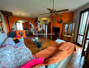 L' immobile è composto al primo piano da ingresso, ampio soggiorno con balcone, cucina con balcone, disimpegno notte, camera matrimoniale, bagno con vasca e doccia e camera da letto con balcone.
