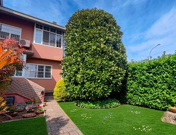 Villetta di testa di circa 180 mq con 150 mq di giardino la soluzione si presenta con un capitolato anni 80 ma ben tenuto e curato. Soluzione disposta su due livelli abitativi oltre la taverna e il box.
