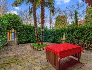 Al piano terra troviamo una cucina abitabile con porta finestra affacciata sul giardino interno, un ampio soggiorno con uscita diretta sul giardino privato e un bagno di servizio.
