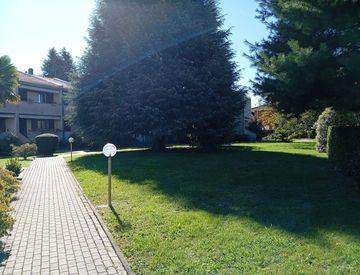 Questa villetta è inserita in un ambiente estremamente silenzioso e riservato, caratterizzato da alberature mature, vialetti curati e ampie zone verdi condominiali dove bambini e famiglie possono muoversi in totale sicurezza.
