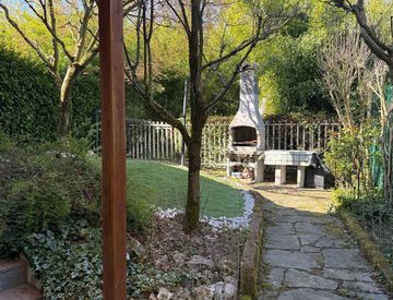 Salendo al primo piano si sviluppa la zona giorno, composta da un ampio salone con camino, cucina abitabile, bagno, balconcino di servizio in cucina e giardino collegato al soggiorno, arricchito da un gradevole pergolato. Ottima l’esposizione, che rende gli ambienti luminosi e ben arieggiati.