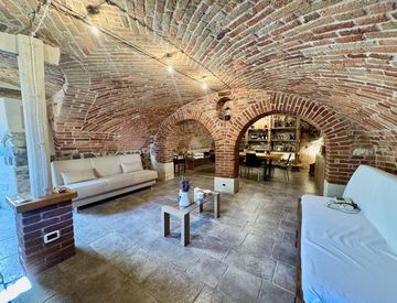 Piano cantinato: un'ampia cantina con soffitti a botte in mattoni a vista;