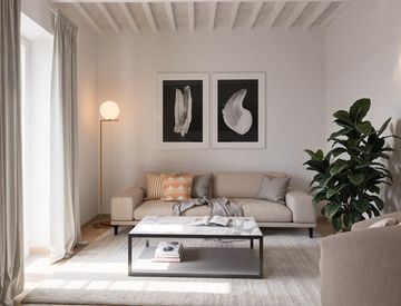 La scala interna, recuperata dalla struttura originale in pietra e valorizzata con gusto, conduce alla zona notte, dove un disimpegno distribuisce gli spazi verso una spaziosa camera matrimoniale, una seconda camera molto ampia e un bagno principale, elegante e funzionale.